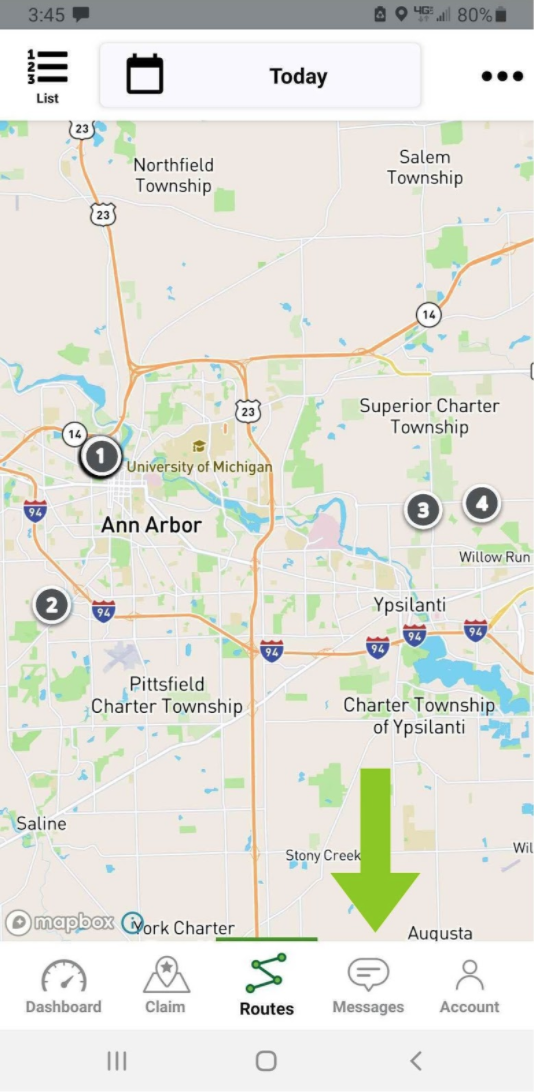 The flow: tap the “Claim” tab to view jobs available to commit to in your service area. Tap on a job to view details, notes and the property markings. Tap “Claim Job” and select a timeframe to add it to your job board. Swipe “Go To Job” when you’re dispatching. When you arrive, swipe “Start Job” before you unload. When you’re done with the job, complete the Check List presented in the service details, then swipe “Finish Job” and upload photos of your job well done.