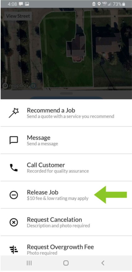 Pro tip: Know the difference between Releasing a Job and Requesting Cancellation. Release a job back to the marketplace when there’s something on your end stopping you from completing a job (equipment malfunction, light on help, etc…), this way another provider can service this customer for you. Only Request Cancellation when it’s something on the customer’s end inhibiting you from servicing their property (dogs on property, locked gates).