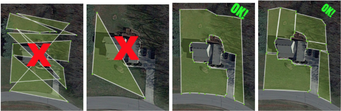 Poorly Marked: There are infinite ways to both poorly and correctly trace a lawn, driveway or sidewalk on LawnGuru. The most important aspect is making sure that all major areas are included. This ensures that you're accurately compensated for your work! Be sure to flag a job as Poorly Marked only if the highlighted portion doesn’t account for the complete area the Customer expects to be serviced, or if the marking lines are crossed. Remember to always flag a property as "Poorly Marked" before accepting the job.