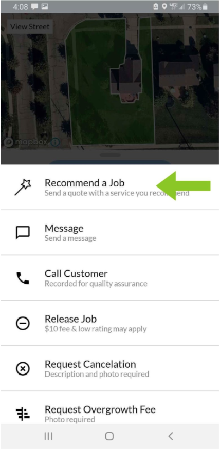 Providers can Recommend a Job, Flag as Poorly Marked, Message or Call customers, Release a Job, Request Cancellation, Request Overgrowth, or Change the Service Day of a recurring job. We'll cover what each option entails below